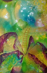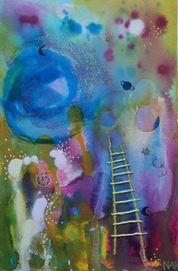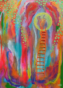 In deze kleurrijke, intuïtief abstracte schilderijen is een ladder verwerkt. De ladder heeft een symbolische waarde die voor iedere kijker een andere betekenis kan hebben. Voor Sylvia zelf staat het symbool voor persoonlijke ontwikkeling.